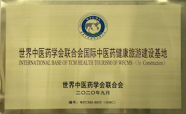 “世界中医药学会联合会国际中医药健康旅游建设基地”奖牌