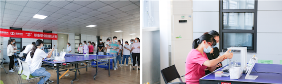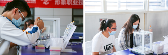 此次技能大赛共有来自科学生命服务部、医学服务部、科研管理中心研发一部和研发二部、HLA服务部和实验诊断部等部门共168名员工报名参加,比赛分为笔试与实操两部分。笔试是基础,只有掌握扎实的实验室规章制度和管理、生物安全、仪器操作注意事项等基础知识,才能练就过硬的专业技能。今年笔试部分增加了新型冠状病毒相关题目,结合疫情防控需要,强化相关检测安全知识。实操部分将理论与实践相结合,考验实验员移液器操作技能:分别取3次液体进行称量,考核移液器使用的重复性、准确性及仪器操作是否规范,着眼业务能力和熟练程度比拼。