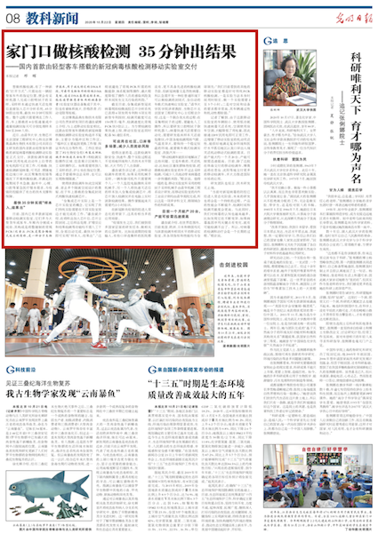 截至现在,全集成新型冠状病毒现场检微流控芯片分析系统已取得4项发明专利和5项实用新型专利授权,检测灵敏度可达150拷贝/毫升,检测速度比常规PCR快3倍以上。为方便检测结果快速上报,移动实验室还同时配备5G通信系统。