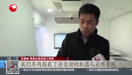 全集成新冠检测移动实验室接通220V民用电即可正常工作,同时它自身配备发电系统,可以在各种苛刻环境下使用。采样可以顺利获得机械手完成,从采样、病毒灭活、样品核酸分析都是无需人工干预自动完成的。操作人员只需要做一个动作,就是用移液枪将灭活后试管内的液体样本加入到芯片里封存,放入全自动微流控核酸分析仪中进行检测,45分钟后车内的显示屏上就会自动显示结果。