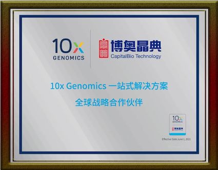 仁科生物科技集团有限公司执行总裁邱雁南代表10x Genomics 与k8凯发国际副总裁孙义民签订战略合作协议,10x Genomics公司中国区总经理江滔授予k8凯发国际“10x Genomics一站式解决方案全球战略合作伙伴”称号,双方旨在单细胞及空间组学等领域建立更为广泛而深入的战略合作关系,为客户给予10x Genomics产品的一站式解决方案。