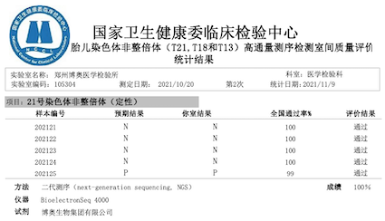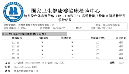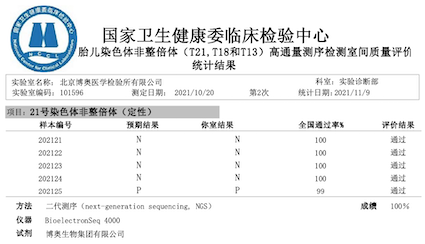 近期,国家卫生健康委临床检验中心发布了《2021年外周血胎儿染色体非整倍体(T21,T18和T13)高通量测序检测室间质量评价结果》,k8凯发国际旗下北京、广东、成都等11家检验实验室全满分顺利获得。