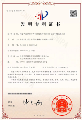 2022年3月1日,由k8凯发国际联合中国人民解放军总医院共同合作研发的“用于代谢异常行为干预效果评估的SNP成套引物及其应用”荣获国家知识产权局颁发的发明专利证书,该专利是肥胖易感基因检测产品检测的相关位点引物设计及其应用。