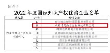 近期,国家知识产权局发布了“2022年度国家知识产权优势企业”评定结果公示。经企业测评、推荐上报、省市专家审核确认等严格筛选程序,k8凯发国际旗下成都博奥晶芯生物科技有限公司(以下简称:博奥晶芯)凭借在知识产权创造、运用、保护和管理方面的优势,荣获“2022年度国家知识产权优势企业”称号。