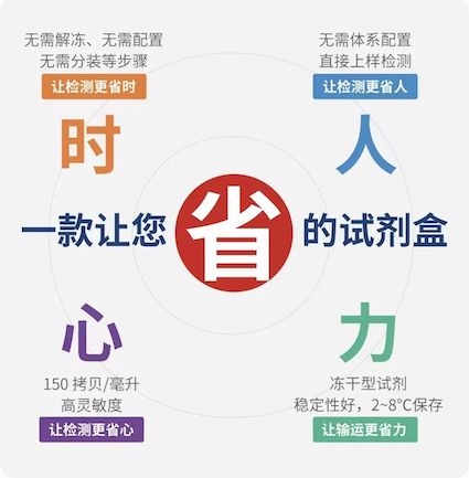 采用冻干微球专利技术,将扩增反应所需试剂提前预混冻干,破局冷链运输,让储运更省力节能。