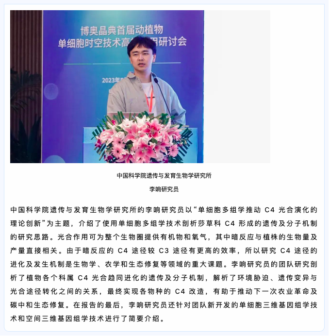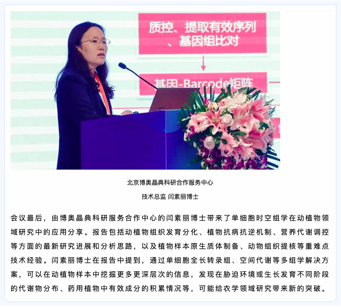 会议伊始,科研合作服务中心主任李彦泽博士对参会来宾表示热烈欢迎,回顾了时空组学技术在动植物领域的里程碑事件,并预祝首届动植物单细胞时空技术高端应用研讨会圆满召开。