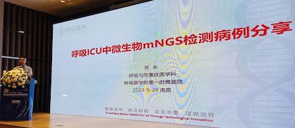 蚌埠医学院第一附属医院主任医师张永教授作了题为《呼吸ICU中微生物mNGS检测病例分享》的主题报告。张永教授顺利获得两例ICU临床病例深入浅出的向听众展示了mNGS检测在疑难危重病诊断中的巨大价值。两位病例均是因不明病原感染,出现高热、呼吸困难及肺弥漫性感染等严重临床症状转入ICU科。顺利获得培养和免疫等常规诊断方法均未能明确病因,只能给予经验性治疗。改用mNGS检测后,分别检测出临床罕见的致病菌肾脏钩端螺旋体和惠普尔养障体,结合患者接触史或临床表现,确诊致病菌。针对致病菌种,对症用药,两位患者得已快速治愈。