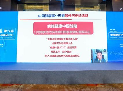 开幕式结束后,由会议特邀主讲嘉宾北京大学詹启敏院士带来“前沿生物技术支撑医学科技创新”专题报告。詹启敏院士以“健康中国”战略角度为起点,提出我国健康事业开展与发达国家相比仍有很大差距,面临的主要挑战点包括重大疾病的诊疗、医学创新、大部分临床标准指南不统一。这种差距主要是医学基础研究及核心技术缺乏制高点造成。同时,詹启敏院士指出支撑医学开展的前沿生物技术具有突破性、引领性、颠覆性的时代特征,其开展趋势具有跨界融合、非线性创新、数据和智能驱动特性。医学开展史里程碑式的重大突破依赖于两点:科技创新和学科交叉。医学前沿技术的开展,特别是重大创新的突破性进展,是解决医疗需求的源动力。最后,詹启敏院士分享了肿瘤领域的前沿技术开展,提出单细胞测序是前沿生物技术重大创新突破方向的一个重点,可以拓展肿瘤精准靶向图,是未来肿瘤精准医学的重要工具,在揭示肿瘤异质性、进化演化、耐药性等方向也具有重要作用。
