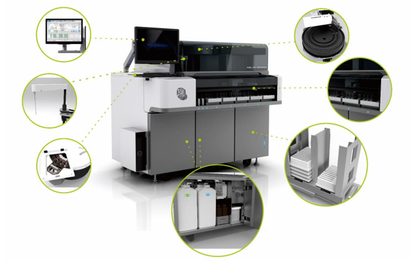 高值样本自动原位稀释,灰区与超限样本自动重测,连接LIS系统。